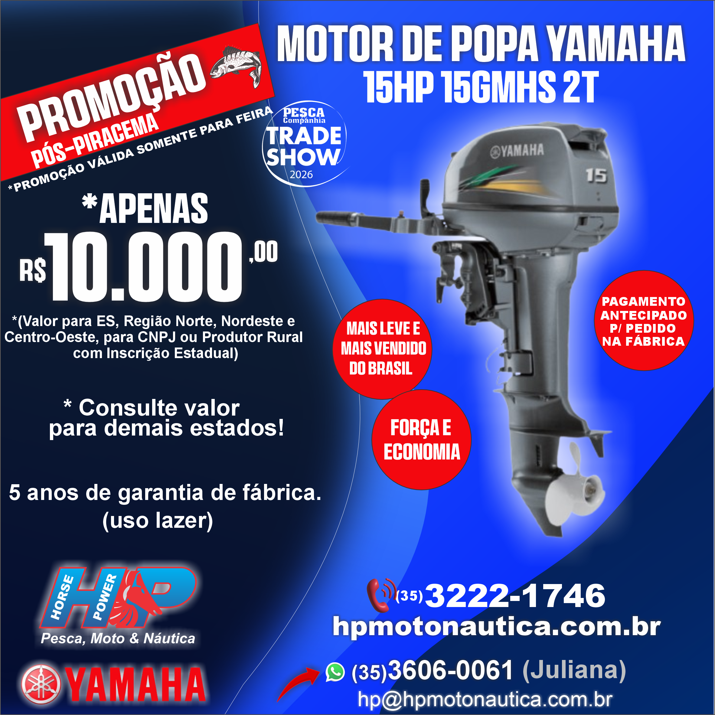 Este Site possibilita a participação de visitantes/usuários através de comentários, troca de informações, publicação de conteúdos gerados por terceiros e divulgação de anúncios publicitários. Os visitantes, usuários e anunciantes ficam desde já cientes de que não devem publicar informações, opiniões ou conteúdos imorais, ilegais, racistas, difamatórios, injuriosos, pornográficos, criminosos, ou qualquer conteúdo que viole os direitos do autor. Ficam cientes ainda que as informações, conteúdos ou opiniões fornecidos ou publicados livremente neste Site, à exceção das informações pessoais solicitadas para fins de cadastro, NÃO SERÃO SIGILOSAS NEM ESTÃO PROTEGIDAS POR ESTA POLÍTICA DE PRIVACIDADE, podendo ser livremente acessadas e visualizadas por outros visitantes e usuários. Ficam também vedados anúncios publicitários ou qualquer divulgação sobre produtos, serviços ou eventos que desrespeitem a lei, a moral e os bons costumes. Os responsáveis por este Site não se responsabilizam pelas informações, opiniões e conteúdos gerados por terceiros, e tampouco pela qualidade ou veracidade dos produtos, serviços ou eventos divulgados através do Site. Qualquer manifestação, reprodução ou publicação imoral ou ilegal deverá ser notificada aos organizadores deste site e será imediatamente removida. A notificação deverá ser encaminhada para o endereço dos responsáveis pelo site (tópico anterior) ou para o seguinte endereço eletrônico:vendasonline@hpmotonautica.com.br.