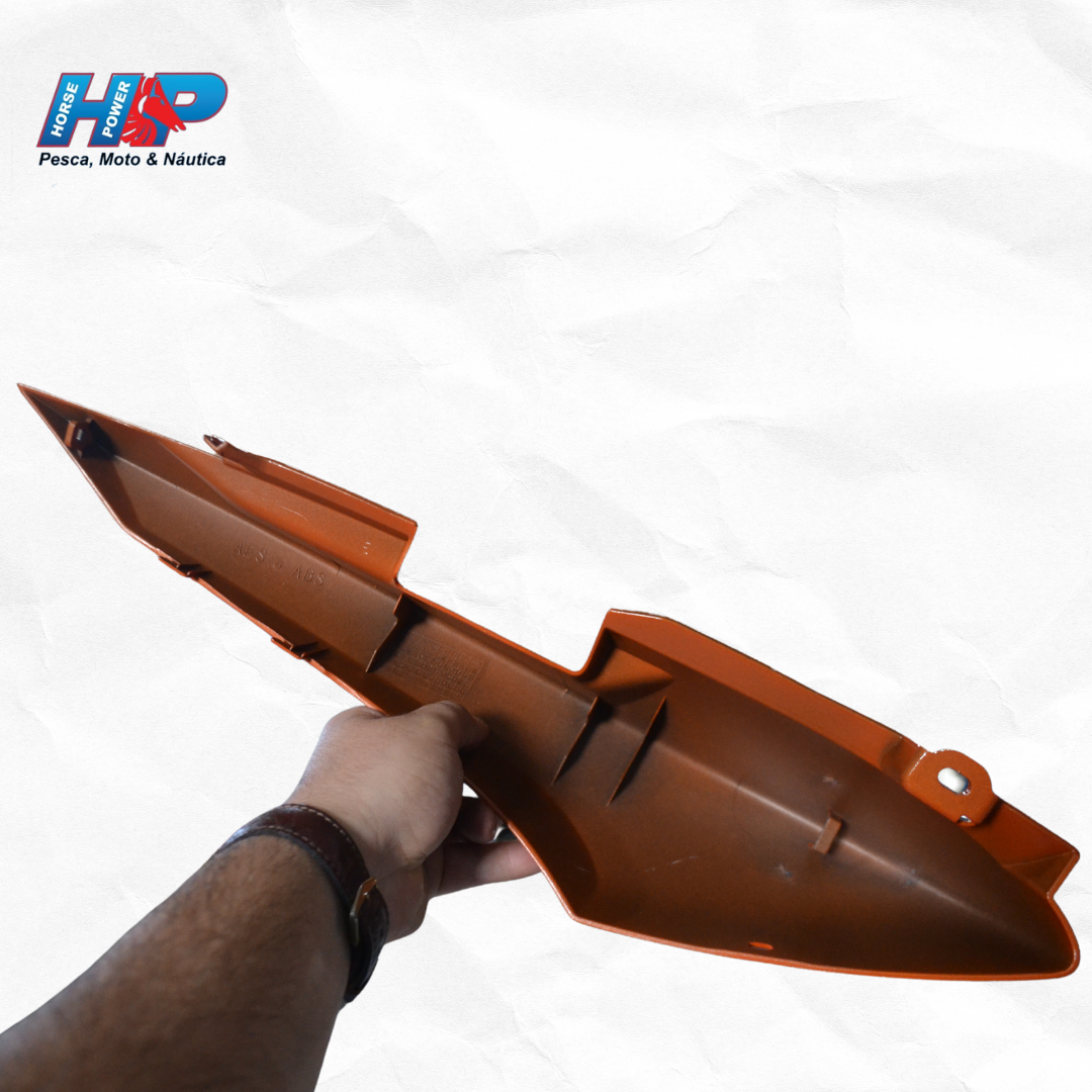 Rabeta traseira original Yamaha para Fazer 150, lado esquerdo, na cor laranja. Produto genuíno, fabricado com materiais de alta resistência, excelente acabamento e encaixe perfeito. Ideal para reposição, mantendo a estética, a segurança e a originalidade da sua motocicleta.